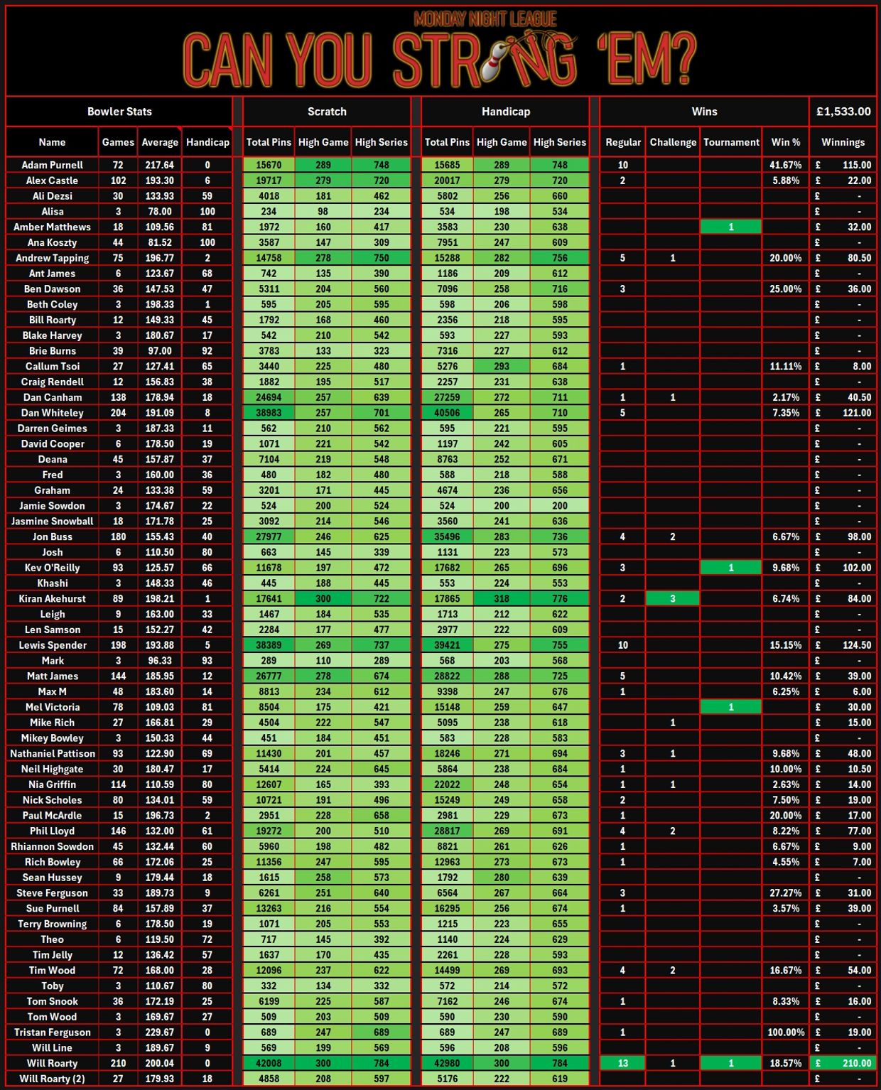 ALL TIME Bowler Stats