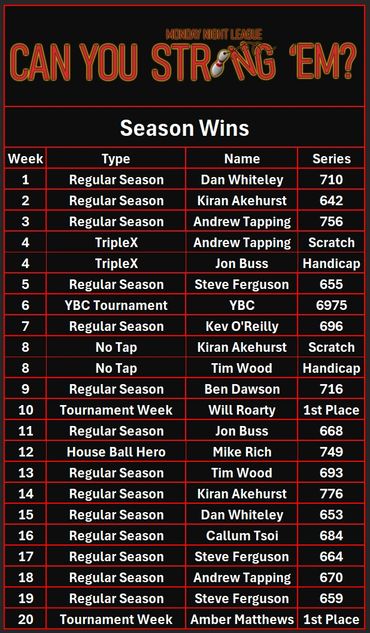 Our non-cashing winner of the night was Andrew Tapping! He didn't qualify but had the highest set of the non-cashing bowlers so congratulations to Andrew on his third win of the season, tying up Steve for most wins of the season! 🥳