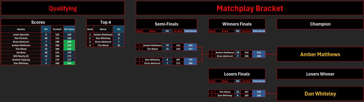 In our semi-finals we saw Amber Matthews take down Tim Wood shooting 184 to 157 on handicap in a pretty convincing win to make her way into the grand finals! Tim drops into the losers finals!